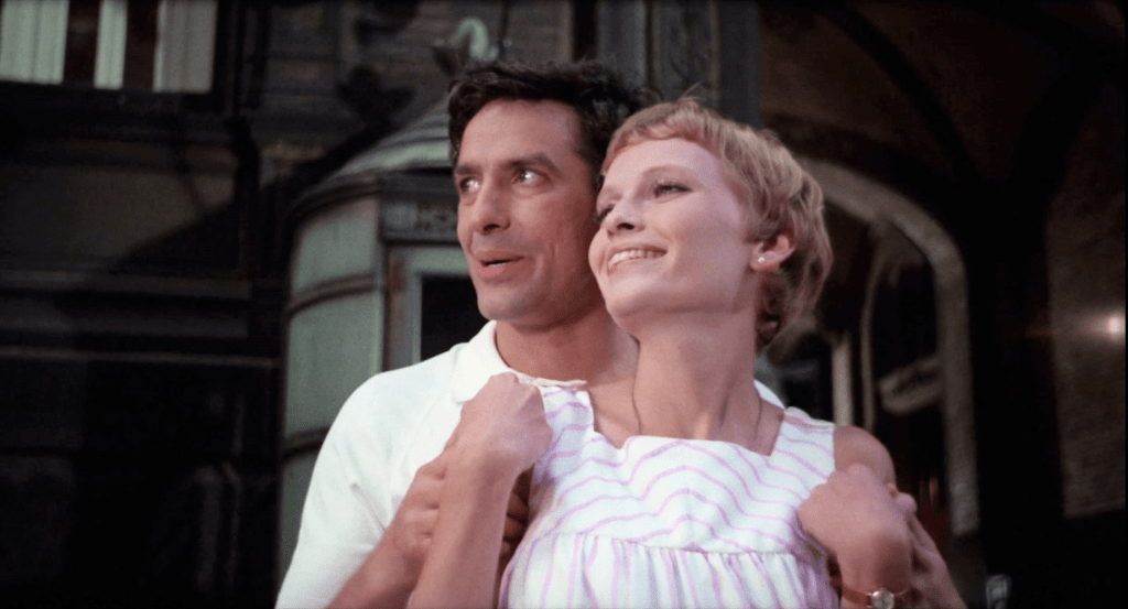Rosemary’s Baby, directed by Roman Polanski in 1968, is a psychological horror movie that discusses themes such as paranoia, satanism, and women’s liberation. It deals with the story of a young woman named Rosemary who moves to New York with her husband Guy, a struggling actor. Upon moving in, Rosemary falls pregnant and the couple becomes very involved with an elderly couple next door, the Castavets, who seem well-intentioned, but very imposing, especially on her pregnancy. As the story goes on, her pregnancy becomes more and more difficult for her. As she reaches out for help from her trusted friends they either die, or she is restricted from seeing them, becoming more isolated and distressed. She begins to suspect that her husband and the Castavets are dealing in witchcraft against her and her unborn child, and she must fight for her and her baby’s life all while living in a society that is actively working against her and her independence. The movie culminates in the baby being Satan’s child. In this essay, I would like to explore the male gaze that is continuously exemplified in the film, in the way that the movie represents and treats Rosemary, and how through this lens, the true horror of the movie becomes the female condition, rather than its satanist undertones. The true fear of the film is not the satanic nature of it, or the dealings of witchcraft, but the lack of bodily autonomy and credibility given to women of this time due to heteropatriarchal ideas.